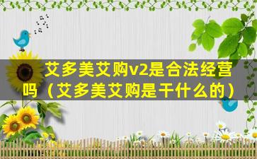 艾多美艾购v2是合法经营吗(艾多美艾购是干什么的)