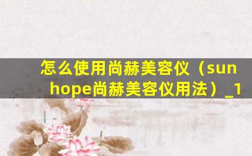怎么使用尚赫美容仪(sunhope尚赫美容仪用法)
