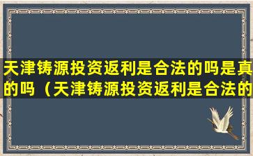 3、天津铸源投资返利是合法的吗是真的吗知乎