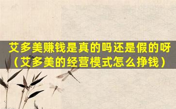 艾多美赚钱是真的吗还是假的呀(艾多美的经营模式怎么挣钱)