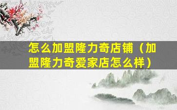 怎么加盟隆力奇店铺(加盟隆力奇爱家店怎么样)
