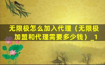 无限极怎么加入代理(无限极加盟和代理需要多少钱)