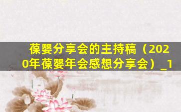 葆婴分享会的主持稿(2020年葆婴年会感想分享会)
