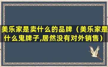 美乐家是卖什么的品牌(美乐家是什么鬼牌子,居然没有对外销售)
