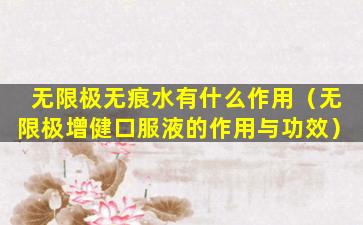 无限极无痕水有什么作用(无限极增健口服液的作用与功效)