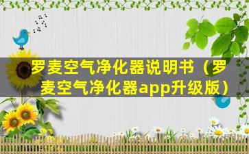 罗麦空气净化器说明书(罗麦空气净化器app升级版)