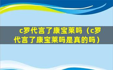 c罗代言了康宝莱吗(c罗代言了康宝莱吗是真的吗)