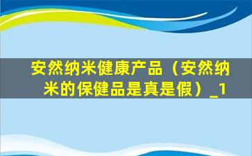 安然纳米健康产品(安然纳米的保健品是真是假)