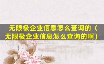 无限极企业信息怎么查询的(无限极企业信息怎么查询的啊)