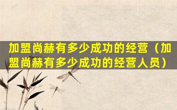 加盟尚赫有多少成功的经营(加盟尚赫有多少成功的经营人员)