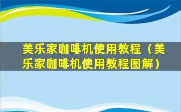美乐家咖啡机使用教程(美乐家咖啡机使用教程图解)
