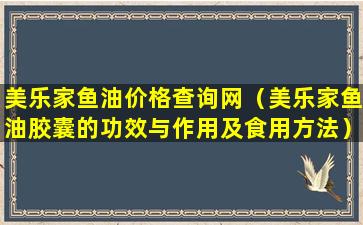 美乐家鱼油价格查询网(美乐家鱼油胶囊的功效与作用及食用方法)