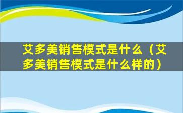 艾多美销售模式是什么(艾多美销售模式是什么样的)