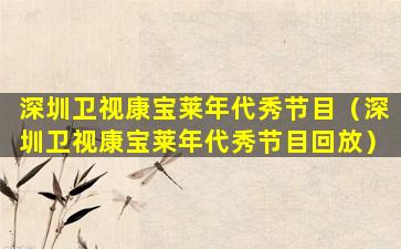深圳卫视康宝莱年代秀节目(深圳卫视康宝莱年代秀节目回放)