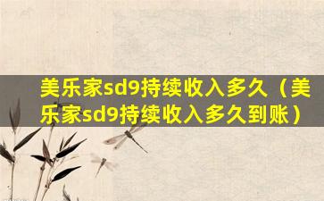 美乐家sd9持续收入多久(美乐家sd9持续收入多久到账)