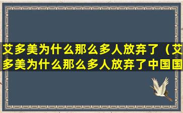 艾多美为什么那么多人放弃了(艾多美为什么那么多人放弃了中国国籍)