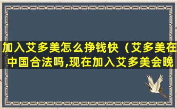 加入艾多美怎么挣钱快(艾多美在中国合法吗,现在加入艾多美会晚吗,还能赚钱吗)
