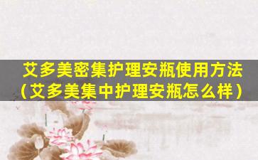 艾多美密集护理安瓶使用方法(艾多美集中护理安瓶怎么样)