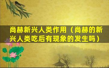 尚赫新兴人类作用(尚赫的新兴人类吃后有现象的发生吗)