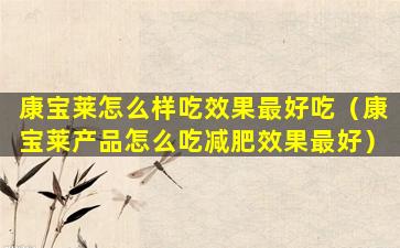 康宝莱怎么样吃效果最好吃(康宝莱产品怎么吃减肥效果最好)