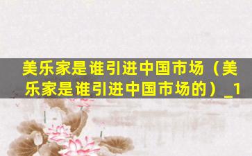 美乐家是谁引进中国市场(美乐家是谁引进中国市场的)