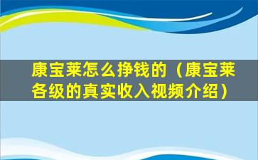 康宝莱怎么挣钱的(康宝莱各级的真实收入视频介绍)