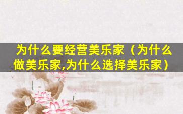 为什么要经营美乐家(为什么做美乐家,为什么选择美乐家)