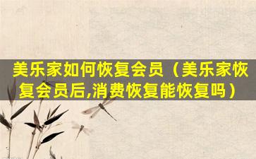 美乐家如何恢复会员(美乐家恢复会员后,消费恢复能恢复吗)