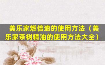 美乐家燃倍速的使用方法(美乐家茶树精油的使用方法大全)