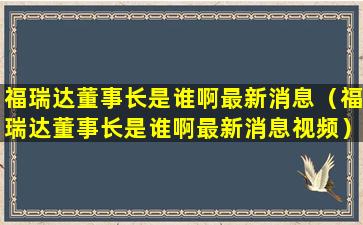 福瑞达董事长是谁啊最新消息(福瑞达董事长是谁啊最新消息视频)