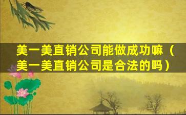 美一美直销公司能做成功嘛(美一美直销公司是合法的吗)
