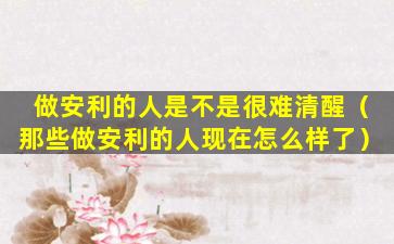 做安利的人是不是很难清醒(那些做安利的人现在怎么样了)