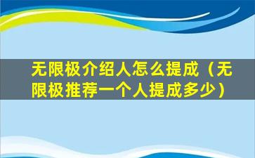 无限极介绍人怎么提成(无限极推荐一个人提成多少)
