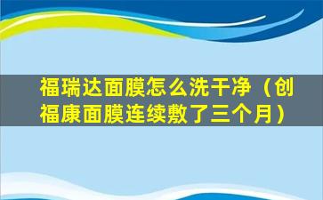 福瑞达面膜怎么洗干净(创福康面膜连续敷了三个月)