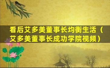 看后艾多美董事长均衡生活(艾多美董事长成功学院视频)