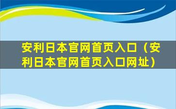 安利日本官网首页入口(安利日本官网首页入口网址)