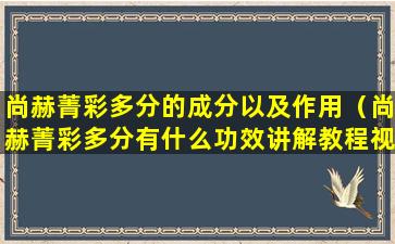 尚赫菁彩多分的成分以及作用(尚赫菁彩多分有什么功效讲解教程视频)
