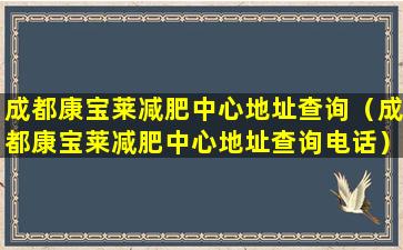 成都康宝莱减肥中心地址查询(成都康宝莱减肥中心地址查询电话)
