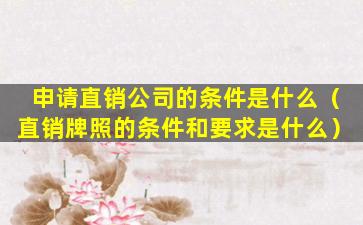 申请直销公司的条件是什么(直销牌照的条件和要求是什么)