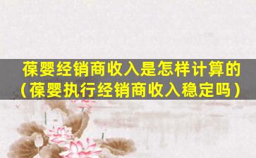 葆婴经销商收入是怎样计算的(葆婴执行经销商收入稳定吗)