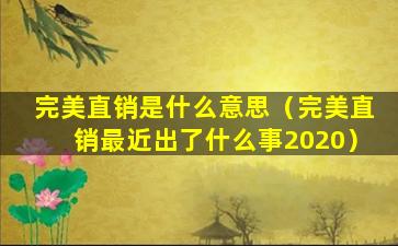 完美直销是什么意思(完美直销最近出了什么事2020)