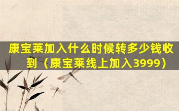 康宝莱加入什么时候转多少钱收到(康宝莱线上加入3999)