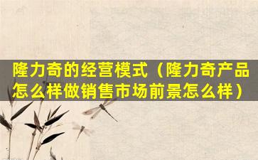 隆力奇的经营模式(隆力奇产品怎么样做销售市场前景怎么样)