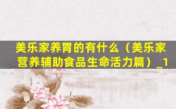 美乐家养胃的有什么(美乐家营养辅助食品生命活力篇)