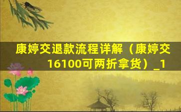 康婷交退款流程详解(康婷交16100可两折拿货)
