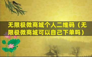 无限极微商城个人二维码(无限极微商城可以自己下单吗)