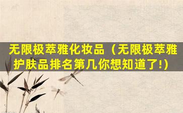 2、无限极萃雅护肤品排名第几?你想知道了!