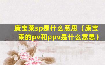 康宝莱sp是什么意思(康宝莱的pv和ppv是什么意思)