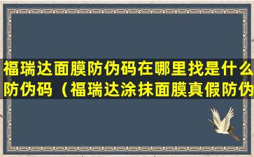 福瑞达面膜防伪码在哪里找是什么防伪码(福瑞达涂抹面膜真假防伪)