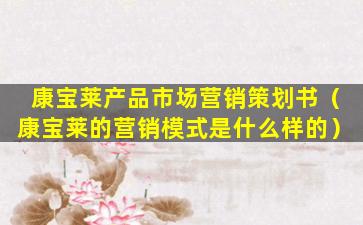 康宝莱产品市场营销策划书(康宝莱的营销模式是什么样的)